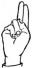 На ћирилици написано МИЉАН ШЕВО састоји се из 9 слова [?]. Исписано ћириличном једноручном азбуком за глувонеме: